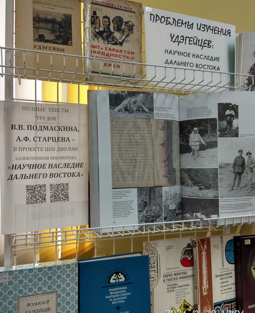 В рамках подготовки к конкурсу юным исследователям будет полезна выставка «Проблемы изучения удэгейцев: научное наследие Дальнего Востока», которая начала работу в читальном зале отдела ЦНБ при ИИАЭ.