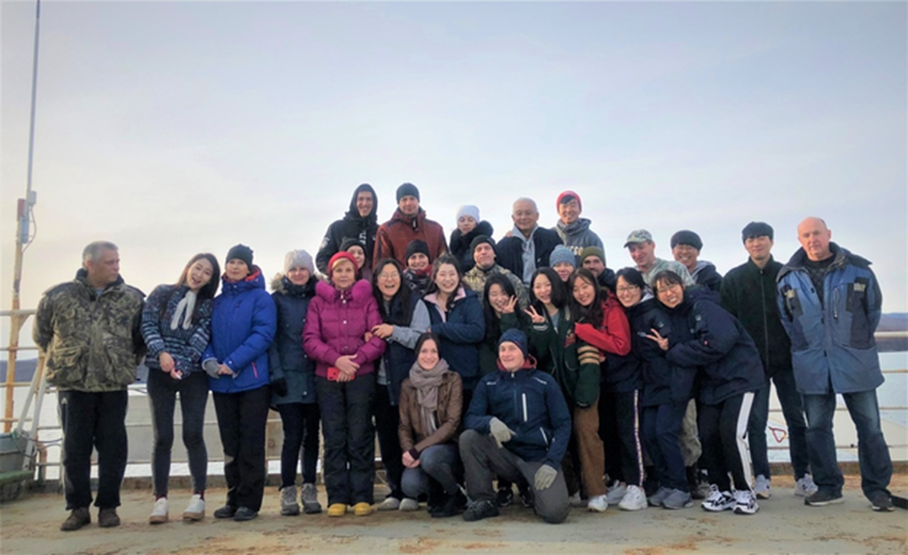 Групповое фото участников российско-корейской экспедиции на НИС «Академик Опарин». Рейс № 58. 2019 г.