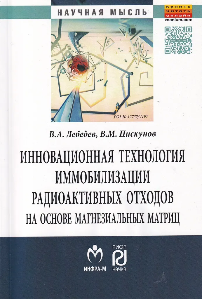 Лебедев, В. А. Инновационная технология иммобилизации радиоактивных отходов на основе магнезиальных матриц / В. А. Лебедев, В. М. Пискунов. - Москва : РИОР : ИНФРА-М, 2026. - 85, [1] с. : ил., табл. - (Научная мысль). - Библиогр.: 125 назв. - ISBN 978-5-369-01429-5.
