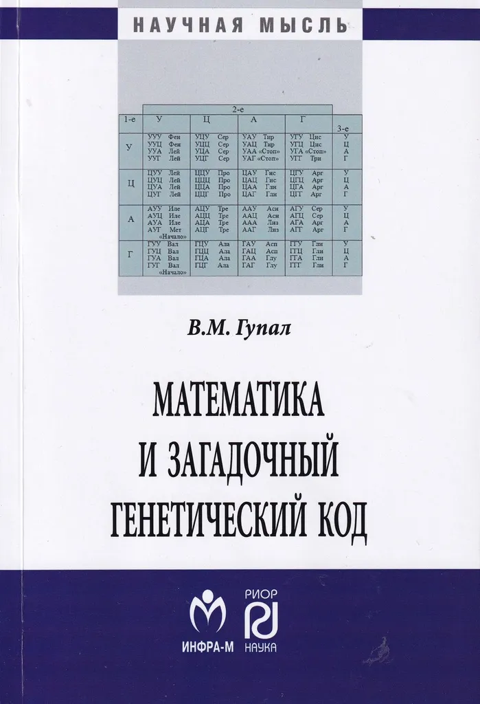 Гупал, В. М. Математика и загадочный генетический код / В. М. Гупал. - 2-е изд. - Москва : РИОР : ИНФРА-М, 2026. - 286, II, [1] с. : ил. - (Научная мысль). - Библиогр.: 190 назв. - ISBN 978-5-369-01404-2.