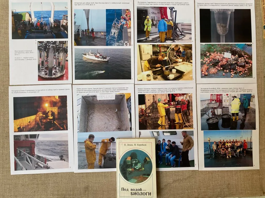 На выставке, посвящённой гидробиологии, представлены не только издания о заре становления этой науки и методах подводных исследований, но и уникальные фотографии из научных рейсов современных гидробиологов — сотрудников ННЦМБ ДВО РАН.