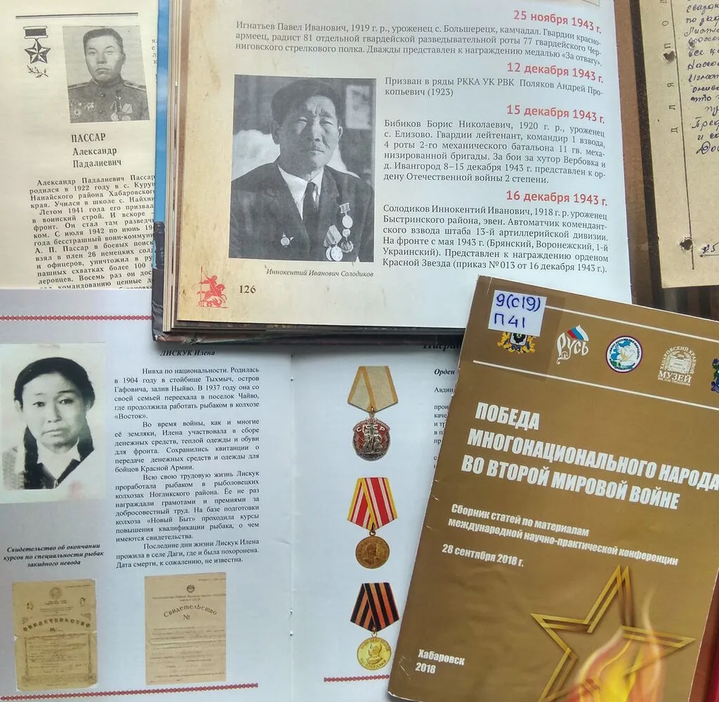 В холле Института истории, археологии и этнографии народов Дальнего Востока открылась выставка «Великая Отечественная в судьбах коренных народов», посвящённая вкладу коренных малочисленных народов Севера, Сибири и Дальнего Востока в Победу.